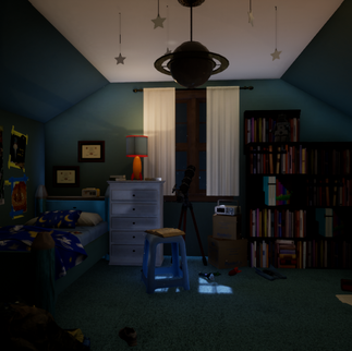Sam's Bedroom is a 3D piece made in UE4. I used different assets from Sketchfab and the Epic Games Market place to make this bedroom. Sam is an 8 year old boy who is in love with space and wants to become an astronaut (I know right? cheesy). It was my first ever 3D environment space in which I wanted to start off with a simple child's bedroom.