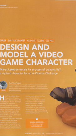 Look at the March 2018 magazine, I studied the different types of body shapes and different hand postures, which helped me study the anatomy. Anatomy is an important thing to study whilst creating a character as one needs to know how the body works before creating a new character.